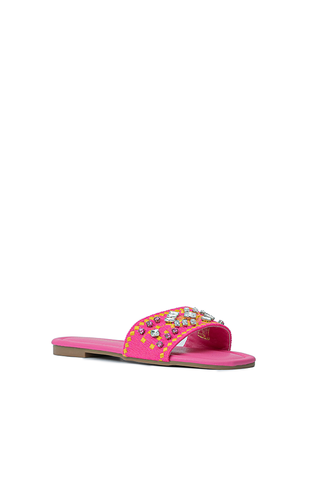 WOMEN SLIPPER CATEGORY : SLIPPER MAIN FEATURE : STONES TOE TYPE : ROUNDED MATERIAL : FABRIC +...