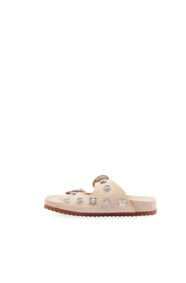 • Model Name: FLAT OUTING SLIPPER• Colors: D.BEIGE-L.BEIGE• Heel Height: Flat sole (approx. 2 cm)• Toe Box:...